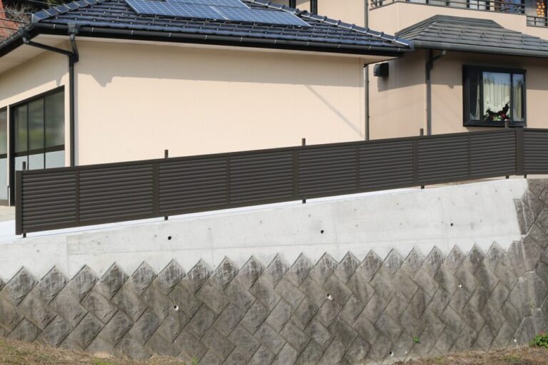 手前にポストと表札を、途中に植栽を配置することで、奥行きがでるようにデザインしています。目に留まるものを配置することで目線の誘導をしているので目隠しと同じ効果もあります。